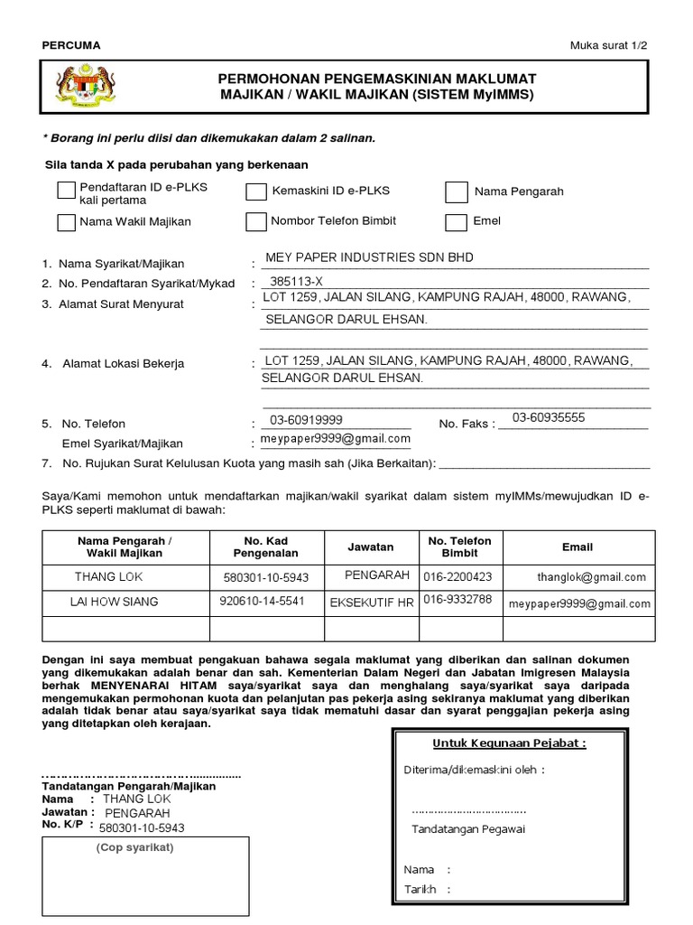 Pengemaskinian Maklumat Majikan Atau Wakil Majikan Kemaskini 28 02 2020 Pdf